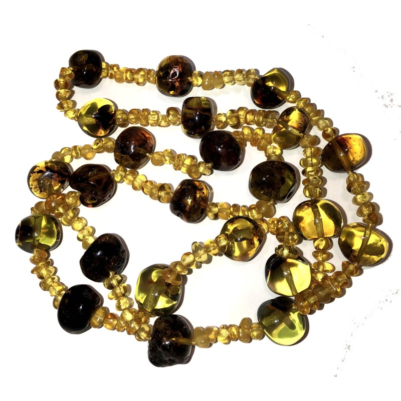 Collier en ambre et copal naturel.