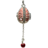 Joli pendentif avec surprise, stylisé comme un œuf de Fabergé miniature, recouvert d'émail multicolore avec une maille traditionnelle et des cristaux en croix : il s'agit d'un motif à l'air délicat et aéré, représentatif de bijoux célèbres.